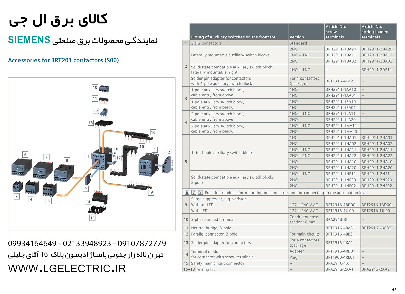 لیست قیمت کنتاکتور زیمنس SIEMENS