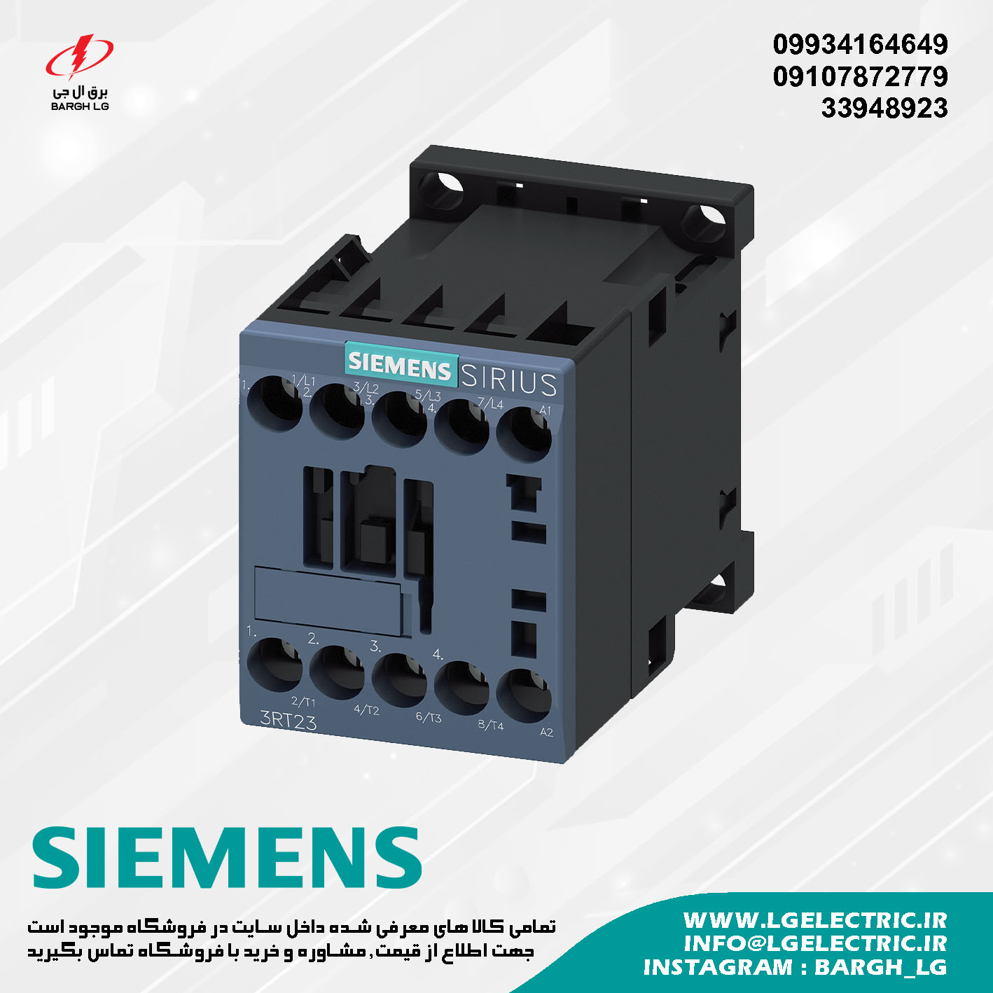 جهت خرید و اطلاع از لیست قیمت کنتاکتور زیمنس با مهندسین فروش کالای برق ال جی نمایندگی فروش محصولات SIEMENS تماس بگیرید.