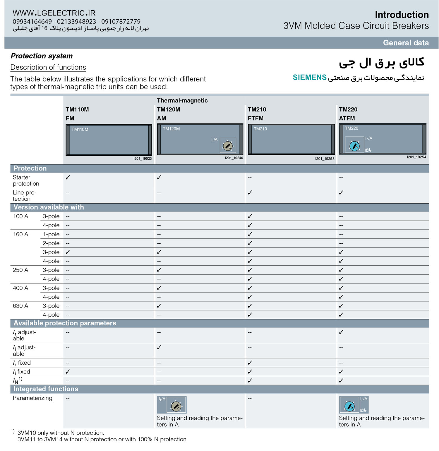 مشخصات فنی کلید اتوماتیک زیمنس مدل SIEMENS 3VM10