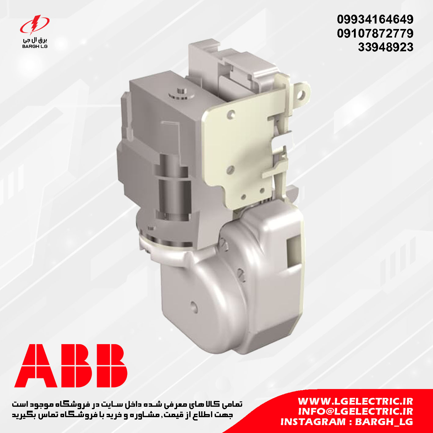 کالای برق ال جی نمایندگی رسمی محصولات ABB در ایران میباشد و پخش محصولات این برند را برعهده دارد. میتوانید برای خرید انواع محصولات ABB با مراجعه به فروشگاه ما و یا شماره های تماس با ما در ارتباط باشید.
