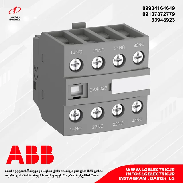 نمایندگی رسمی کنتاکت کمکی کنتاکتور های برند ABB در ایران بوده و آماده ارائه خدمات مشاوره و فروش کنتاکت کمکی کنتاکتور ABB سری CA4 در مدل مختلف میباشد. جهت مشاوره و خرید کنتاکت کمکی کنتاکتور ABB با برق ال جی تماس حاصل نمایید.