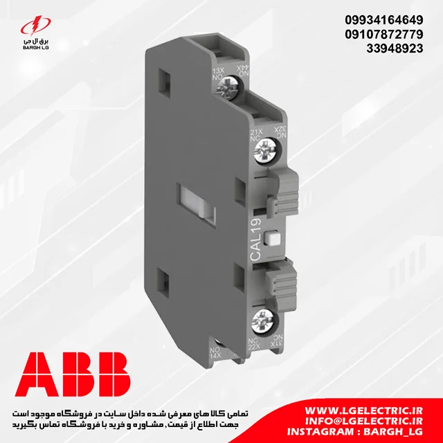 برق ال جی نمایندگی رسمی کنتاکت کمکی کنتاکتور های برند ABB در ایران بوده و آماده ارائه خدمات مشاوره و فروش کنتاکت کمکی کنتاکتور ABB سری CAL19 میباشد. جهت مشاوره و خرید کنتاکت کمکی کنتاکتور ABB با برق ال جی تماس حاصل نمایید.