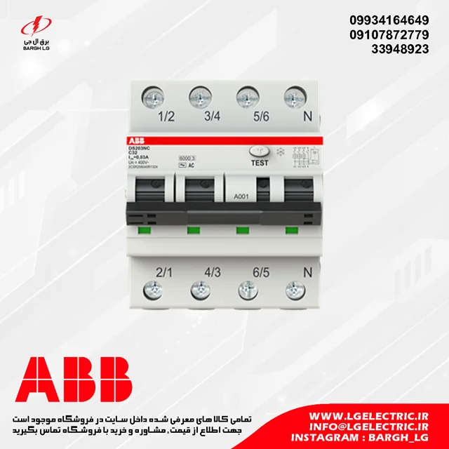 مشخصات فنی کلید محافظ جان ترکیبی ABB مدل DS203 سه فاز (چهار پل)