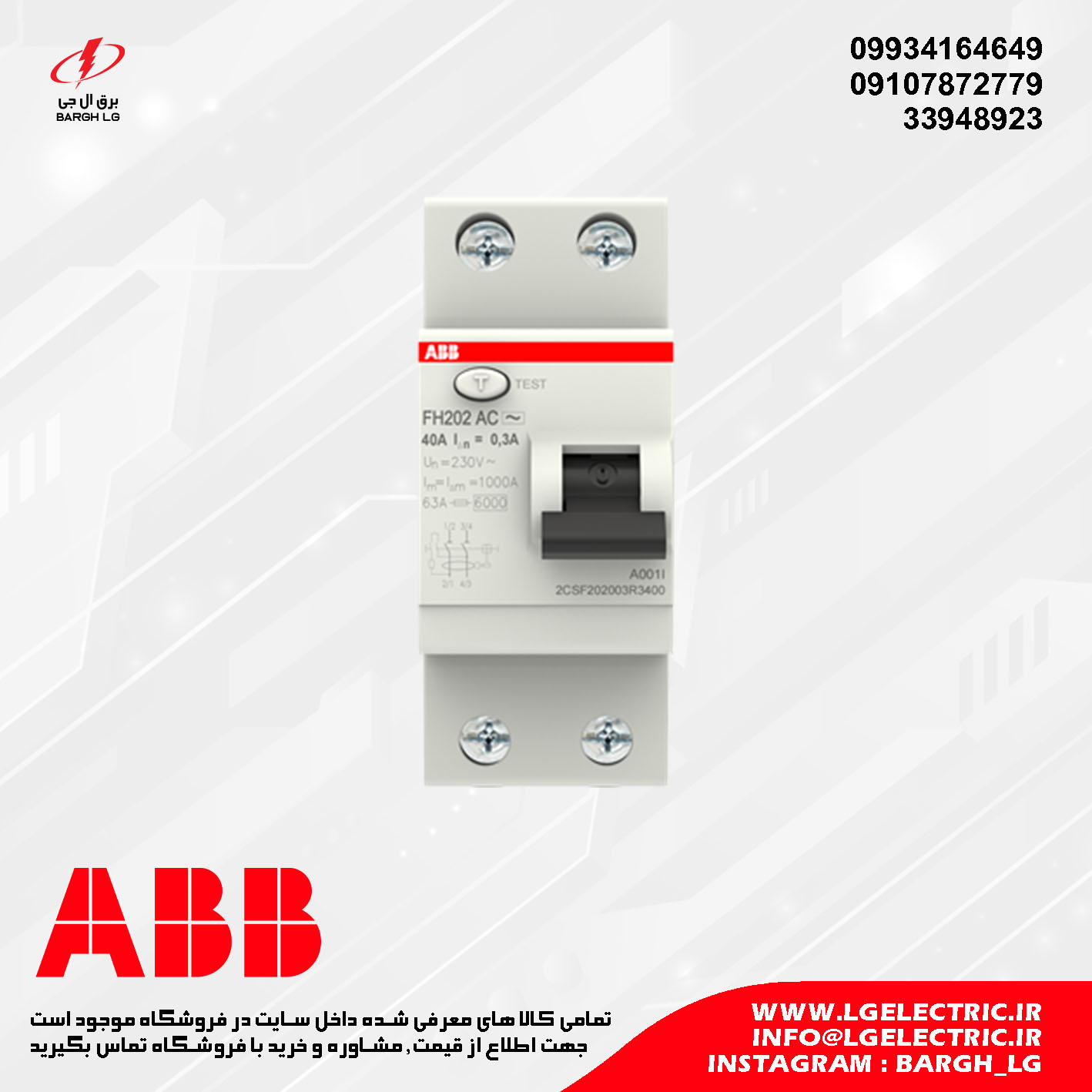 کالای برق ال جی نمایندگی محصولات ABB در ایران میباشد و پخش محصولات این برند را برعهده دارد. میتوانید برای خرید انواع محصولات ABB با مراجعه به فروشگاه ما و یا شماره های تماس با ما در ارتباط باشید.