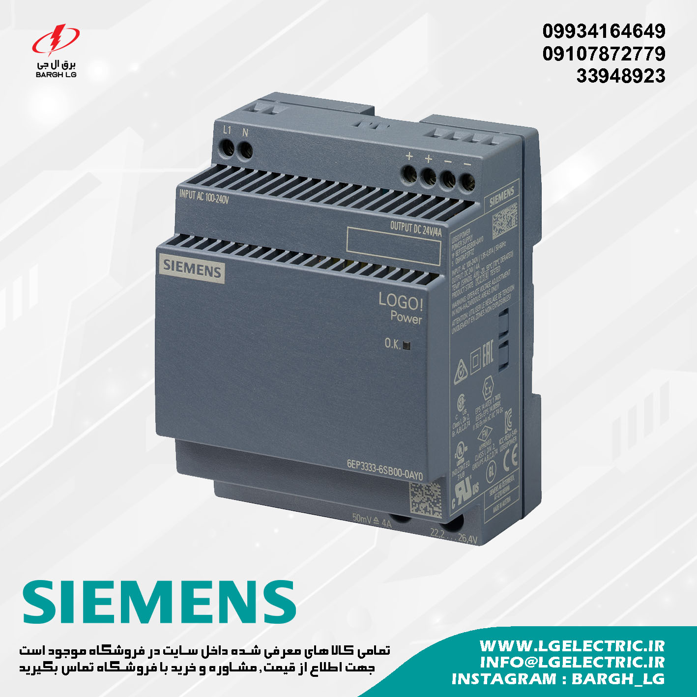 جهت خرید و اطلاع از لیست قیمت منبع تغذیه پی ال سی زیمنس با برق ال جی نمایندگی فروش محصولات SIEMENS تماس بگیرید.