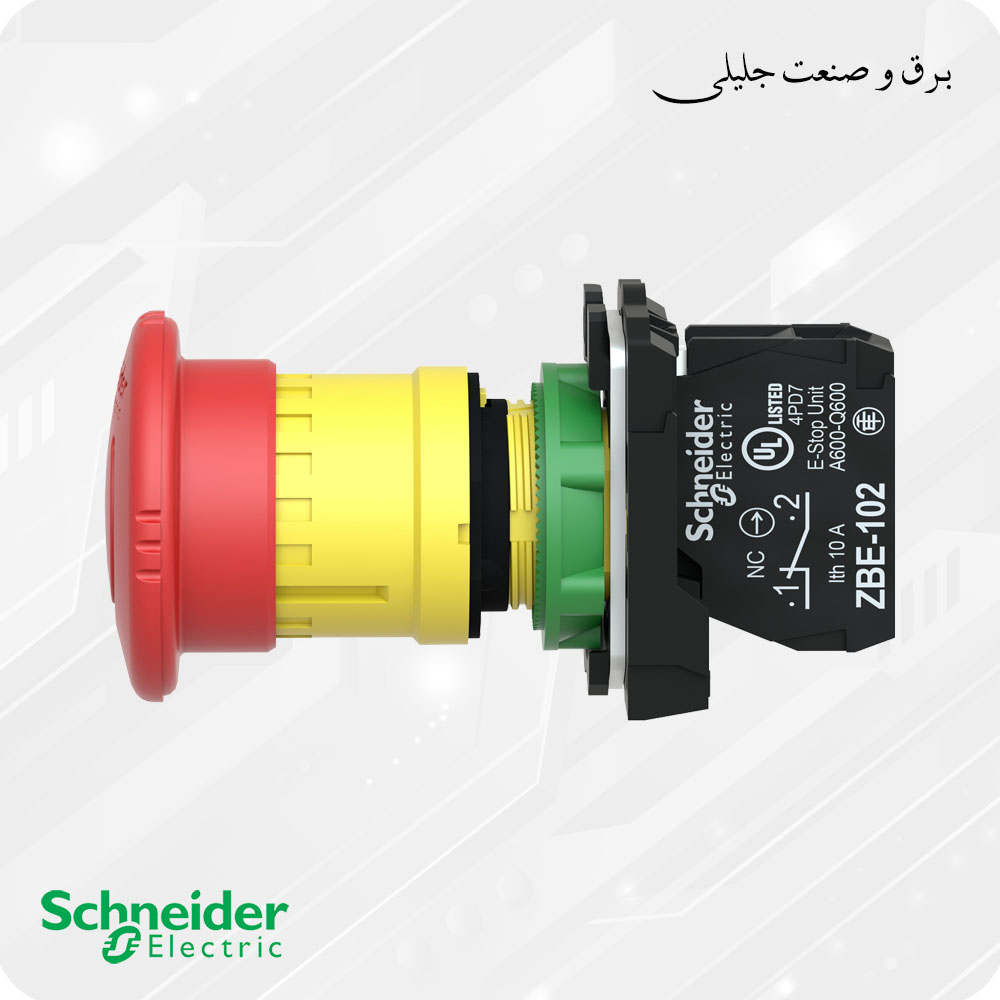 | شاسی استاپ قارچی قفل شو اشنایدر کامل (عملگر + پایه + کنتاکت) قطر قارچی 40 میلیمتر | ||