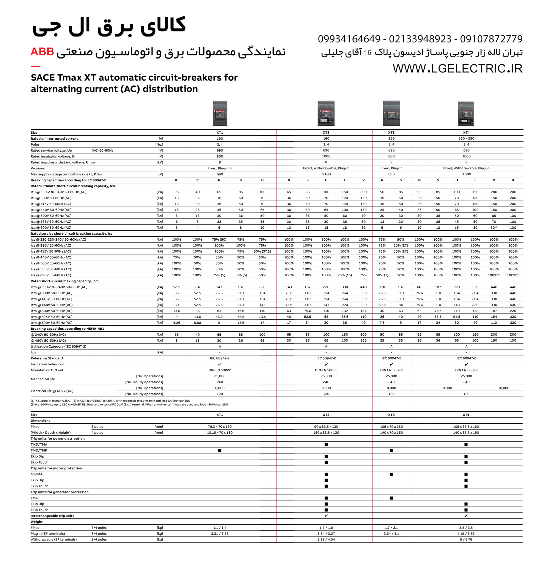 مشخصات فنی کلید اتوماتیک ABB XT1 | |